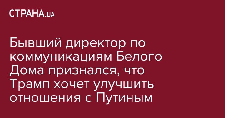 Бывший директор по коммуникациям Белого Дома признался, что Трамп хочет улучшить отношения с Путиным