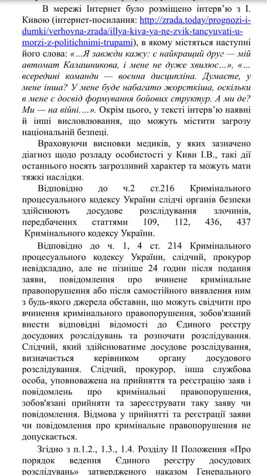 "Этот узурпатор-рейдер неоднократно в эфире телеканалов, в СМИ и в социальных сетях угрожал утопить в крови руководителей Социалистической партии и СДП, а также некоторых народных депутатов, которые выступили против рейдерства СПУ.