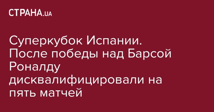 Победа в первом матче Суперкубка Испании дорого обошлась форварду Реала Криштиану Роналду. Он был удален в матче против Барселоны, а затем и дисквалифицирован на пять игр за свое поведение. Но в суперклассико Барселона - Реал: каталонцы проиграли первый матч за Суперкубок Испании.
