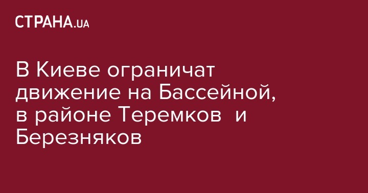В Киеве ограничат движение на Бассейной, в районе Теремков и Березняков