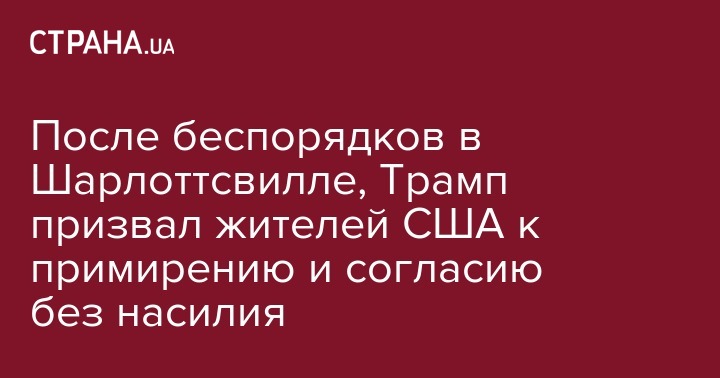 После беспорядков в Шарлоттсвилле, Трамп призвал жителей США к примирению и согласию без насилия