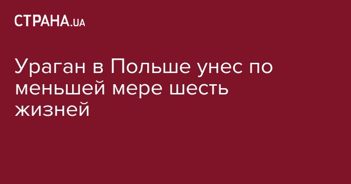 Вследствие ураганов, которые на днях пронеслись по территории Польши, погибли шесть человек, около 50 человек ранены, разрушены тысячи домов.