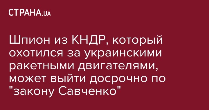 Один из двух граждан КНДР, осужденных в Украине за шпионаж и попытку получить технологии создания двигателей межконтинентальных баллистических ракет, может выйти на свободу досрочно благодаря "закону Савченко". Об этом стало известно "Стране".