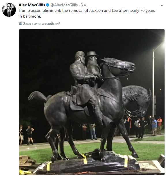 Американские власти убрали памятники Конфедерации в Балтиморе на фоне событий, которые происходили в Шарлоттсвилле. Об этом сообщает The Guardian.