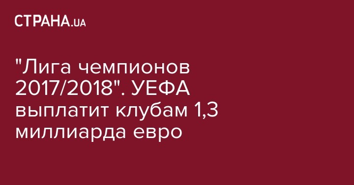 Сегодня, 16 августа в УЕФА обнародовали схему распределения призовых для клубов-участников Лиги чемпионов УЕФА-2017/18. В общей сложности команды получат около 1,3 миллиардов евро.