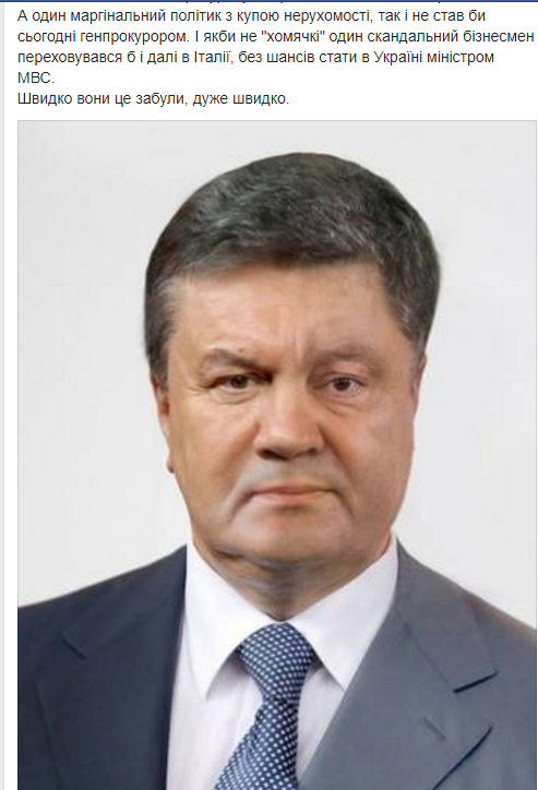 "Президент Порошенко лично ненавидит антикоррупционных активистов. Пренебрежительно называя их "хомячками". После последней пресс-конференции президент встретился со мной и коллегами отдельно, чтобы поговорить о расследовании убийства Павла Шеремета. Диктофоны, телефоны и даже часы мы сдали охране АП. Порошенко был сдержанным и взвешенным, пока мы обсуждали ход расследования убийства Павла. Когда же дело дошло до вопросов о коррупции, президент сорвался на свой фирменный фальцет: