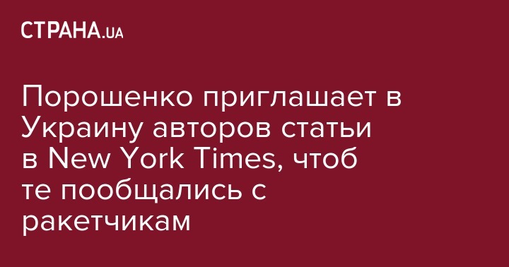 "Поручил пригласить авторов статьи посетить Украину для встреч с украинскими партнерами, которые несправедливо попали под безосновательные подозрения. Это был бы правильный шаг со стороны уважаемого издания, которое ответственно относится к доверию своей читательской аудитории", - подчеркнул Порошенко.