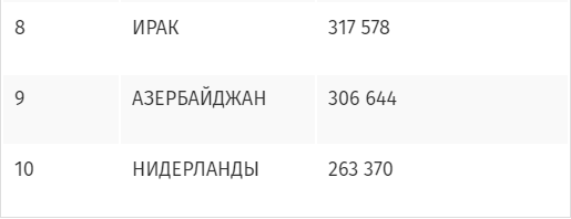 ТОП-10 стран-лидеров турпотока в Турцию за период январь-июнь 2017 года: