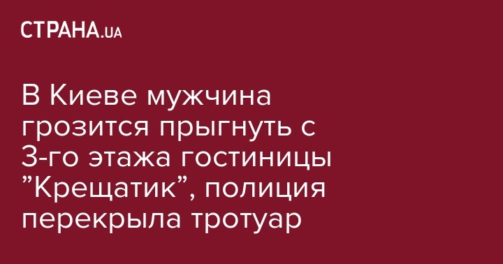 В центре Киева неизвестный мужчина в возрасте около 40 лет в гражданской одежде угрожает прыгнуть с 3-го этажа гостиницы "Крещатик".