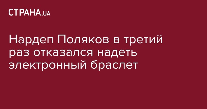 Депутат Народного Фронта Максим Поляков в третий раз отказался надеть электронный браслет слежения, который его обязал носить суд на время расследования "янтарного дела". Об этом сообщают "Украинские Новости".