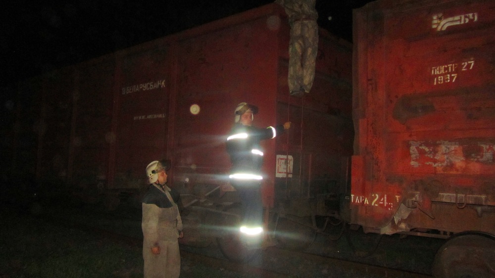 "По прибытию в 21:50 спасателями установлено, что произошло возгорание тары с наполнением химических и минеральных удобрений, которые находились в грузовых вагонах открытого типа подвижного железнодорожного состава. Поезд направлялся ст. Дарница ст. Коростень", - сообщает ГСЧС.
