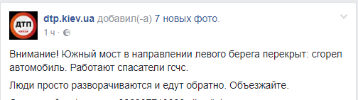 В Киев на Южном мосту сегодня, 17 августа, загорелся автомобиль, из-за чего на мосту в направлении Левого берега образовалась огромная пробка. Об этом сообщает Dtp.kiev.ua в Facebook.