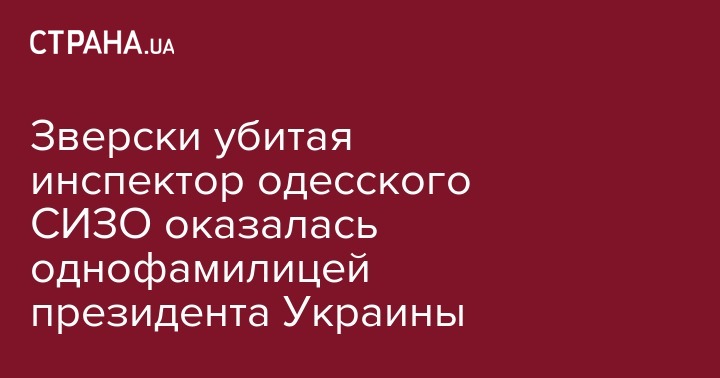 Зверски убитая инспектор одесского СИЗО оказалась однофамилицей президента Украины