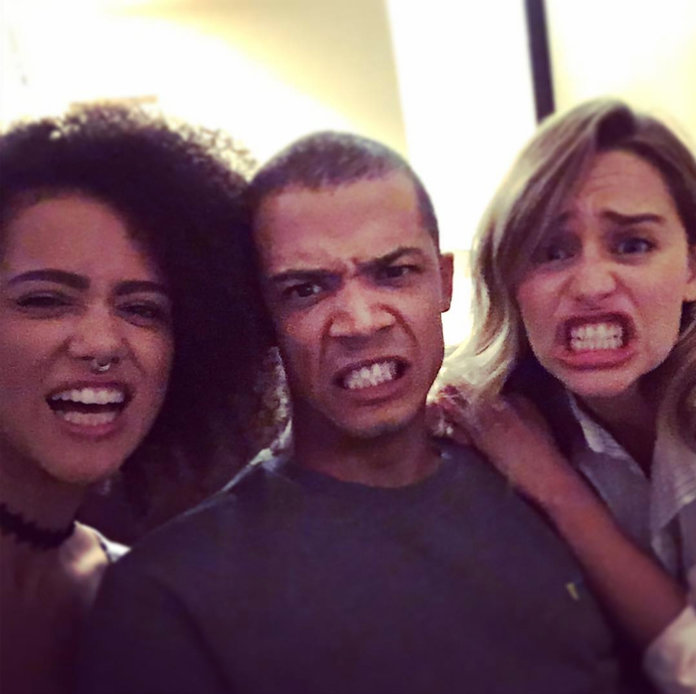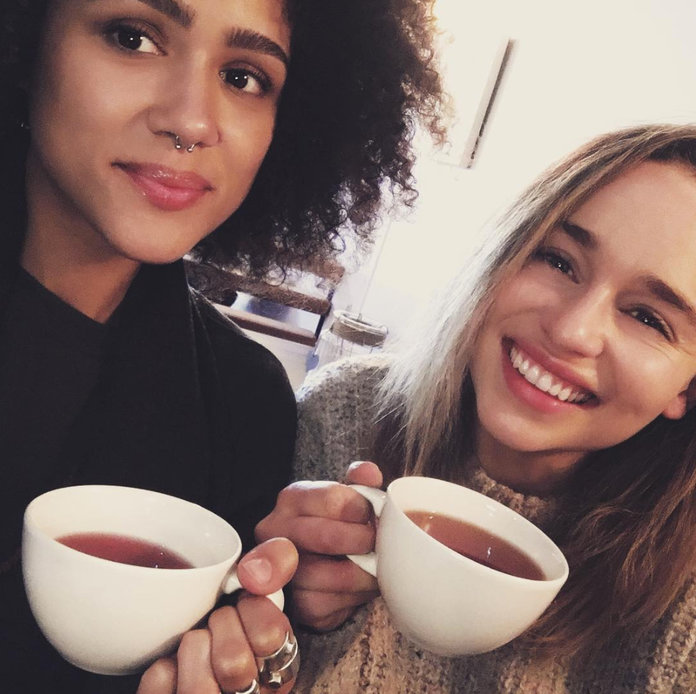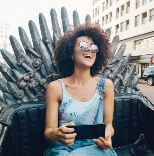 Натали Эммануаль (Миссандея) выкладывала фото со своей "королевой" Эмилией Кларк, а также хвасталась, что пока все борются за Железный трон, она уже на нем сидит на Комик-Коне.