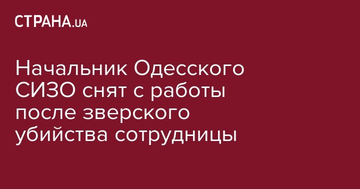Начальник Одесского СИЗО Вячеслав Коваль отстранен от исполнения своих обязанностей из-за вчерашнего зверского убийства сотрудница изолятора Алены Порошенко заключенным. Об этом сообщает местное издание "Таймер" со ссылкой на свои источники в СИЗО.