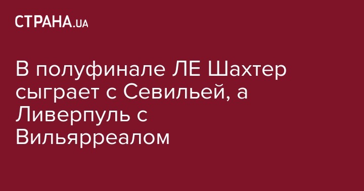 Итак, в полуфиналах сразятся: Вильярреал (Испания) -Ливерпуль (Англия) и Шахтер (Украина) -Севилья (Испания).