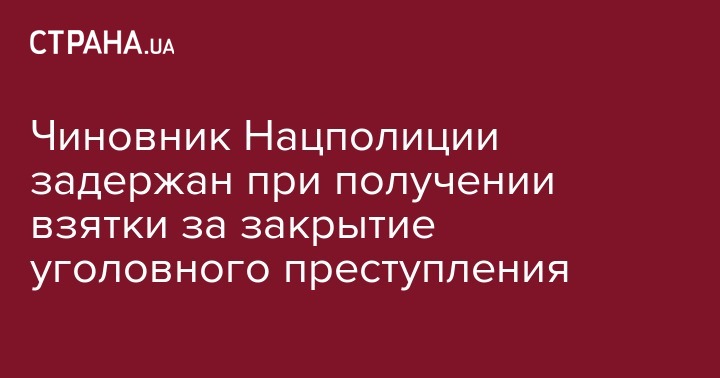 Чиновник Нацполиции задержан при получении взятки за закрытие уголовного преступления