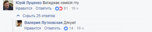 В комментарии к посту с просьбой направить выездную комиссию в СИЗО, Юрий Луценко написал: "Выезжает комиссия ГПУ".