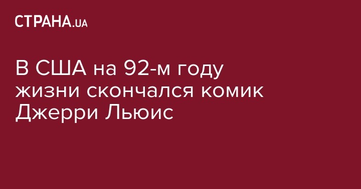 Сегодня, 20 августа, американский актер и комик Джерри Льюис скончался в Лас-Вегасе на 92-м году жизни. Об этом сообщает The Hollywood Reporter.
