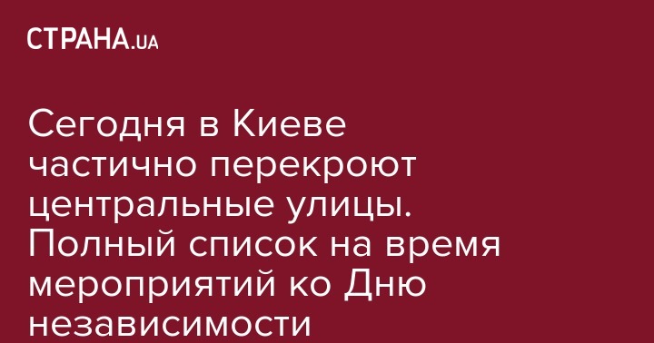 Сегодня в Киеве частично перекроют центральные улицы. Полный список на время мероприятий ко Дню независимости