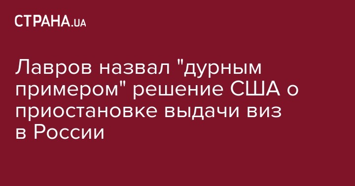 Лавров назвал "дурным примером" решение США о приостановке выдачи виз в России
