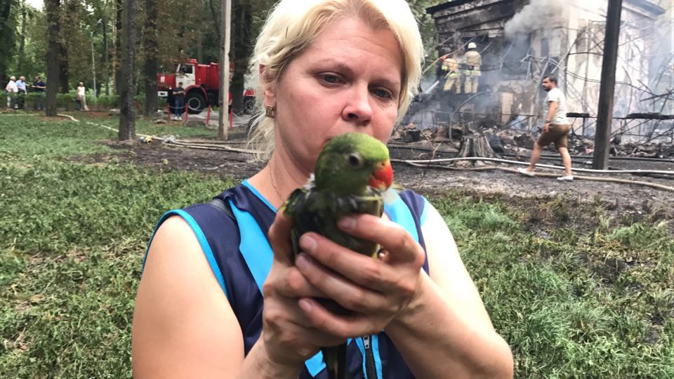 Из огня пожара в киевском парке Пушкина спасли попугая Кешу
