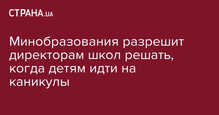 "И это очень большая редкость, если какая-то школа решает разделить свой учебный год на триместры. Это нетипично. Вообще МОН регламентирует только начало учебного года 1 сентября, что учебный год должен завершиться не позже 1 июля и суммарно каникул в течение учебного года должно быть не менее 30 дней. В пределах этих цифр каждая школа должна сформировать, когда именно она будет объявлять каникулы ", - сказала Гриневич.
