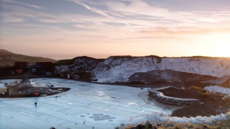 Вторую часть снимали в Белфасте, , в Северной Ирландии, и там пришлось искусственно создавать зиму. Скалы покрывали белой краской и снегом, а озеро сделали, залив асфальтом остатки заброшенной каменоломни и уложив сверху искусственный лед.