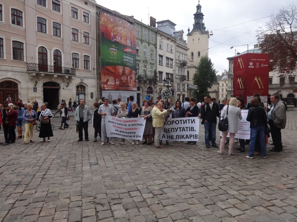 Во Львове несколько месяцев продолжается противостояние мэрии и работников местных стоматологий. Они в очередной раз вышли на пикет, протестуя против постановления Львовского городского совета, согласно которому коммунальные стоматологические поликлиники Львова будут реформированы в коммунальные некоммерческие предприятия. Об этом сообщает Дивись.info.