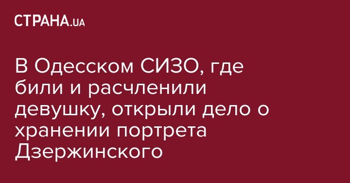В Одесском СИЗО, где били и расчленили девушку, открыли дело о хранении портрета Дзержинского