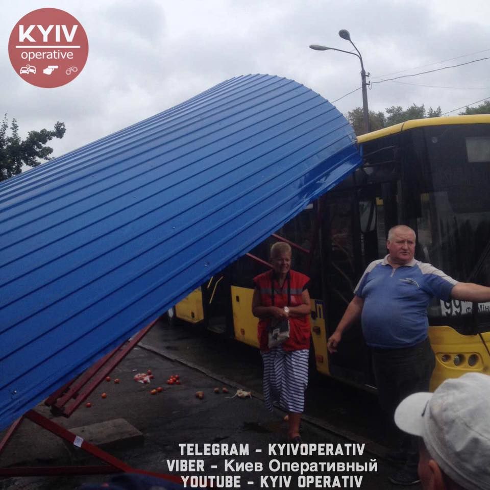 "На площади Тараса Шевченко водитель 99 автобуса, д.н.з. # AA0424AA, тормозя возле остановки, немного не рассчитал габариты и въехал в остановку. От удара сооружение снесло с места. Людей, что сидели на остановке, разбросало по асфальту", - говорится в сообщении.
