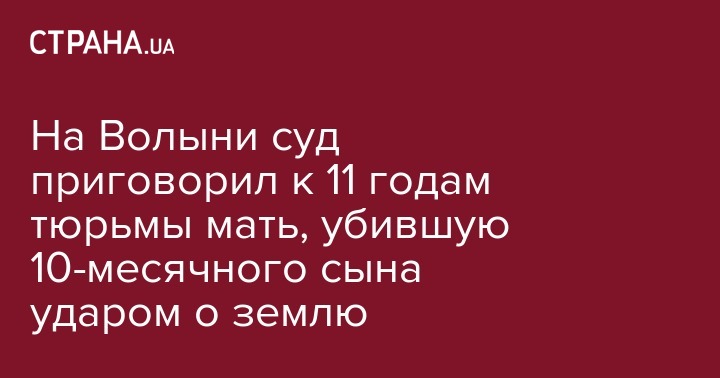 Ковальский горрайонный суд приговорил к 11 годам заключения 22-летнюю жительницу села Подгородное Любомльского района за убийство собственного 10-месячного сына. Об этом сообщила пресс-служба прокуратуры Волынской области.