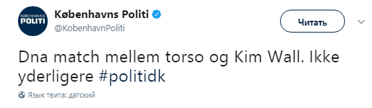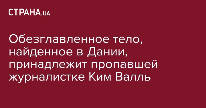 В полиции Дании подтвердили, что найденное в прибрежных водах Копенгагена тело без головы и конечностей, принадлежит пропавшей 30-летней журналистке Ким Валль. Об этом в Twitter сообщает полиция Копенгагена.