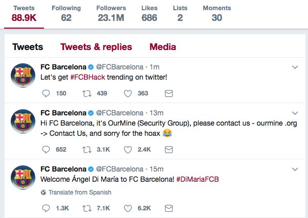 Позже Барса вернула себе контроль над страницей, сообщила и взломе и опровергла информацию о трансфере.