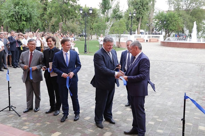 Церемония открытия этих учебных заведений по прямой связи транслировалась на большом экране в Покровске.