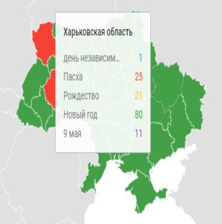 Мы сравнили популярность Дня независимости и перечисленных президентом праздников за 2016 год, добавив к общему списку 9 мая - День победы. В целом по Украине предпочтения разделились так: