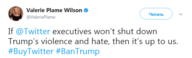 "Если руководство Twitter не положит конец насилию и ненависти со стороны Трампа, то тогда это должны сделать мы", - и начала сбор денег.