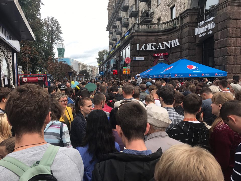11:30  К металлоискателям выстроились огромные очереди. Люди пытаются покинуть Крещатик и попадают в "человеческую пробку".