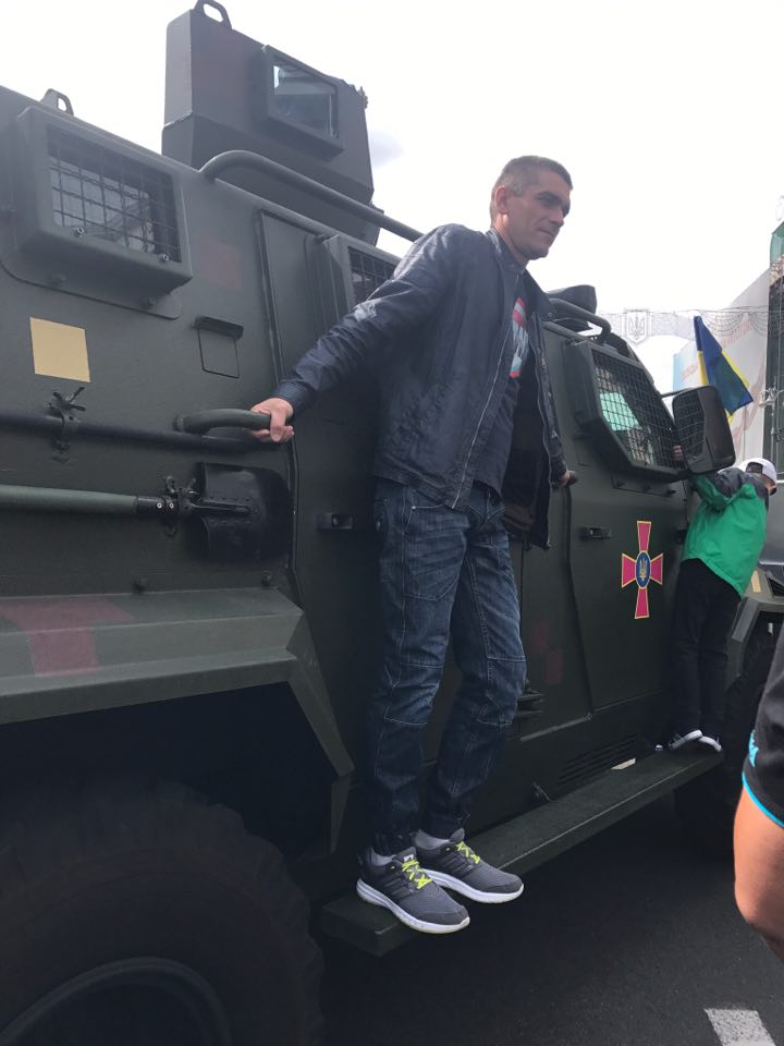10:08  Полторак передвигается по Крещатику на военном джипе "Хаммер"