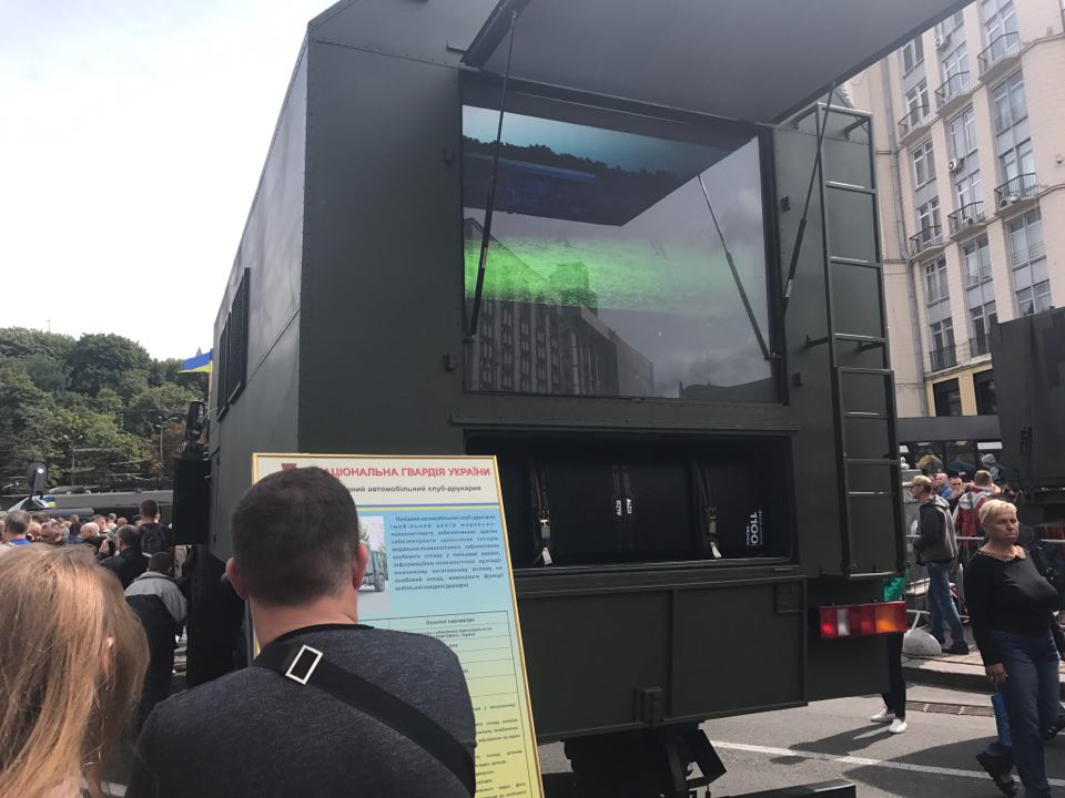 12:07  "А это - пропагандамобиль, у нас таких целых две штуки", - говорит мужчина сыну, проходя мимо походного автомобиля-типографии ФПВ-44403.