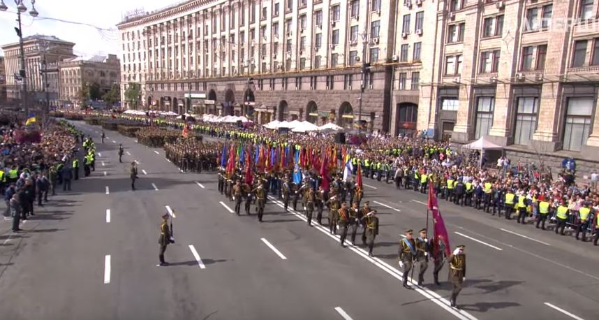 12:45  По оценкам киевской полиции, военный парад смотрели около двух тысяч зрителей. Охраняли их вдвое больше силовиков.