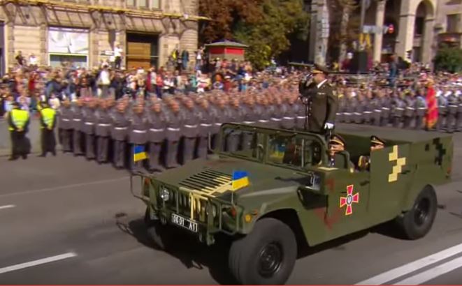 10:05  Глава Минобороны Степан Полторак начал объезжать войска.