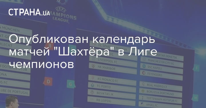 Опубликован календарь матчей "Шахтёра" в Лиге чемпионов