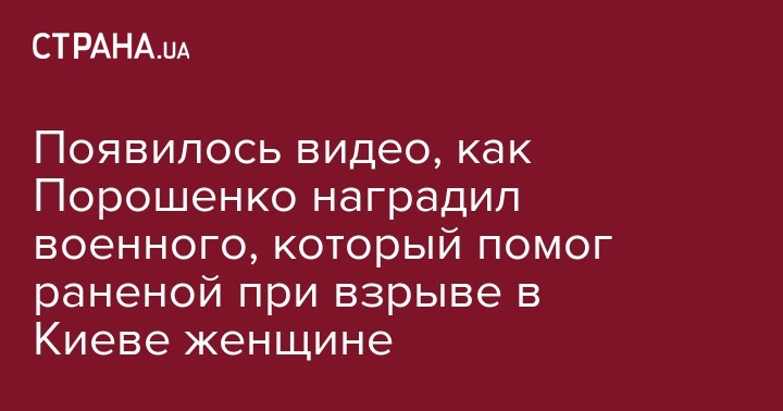 Появилось видео, как Порошенко наградил военного, который помог раненой при взрыве в Киеве женщине