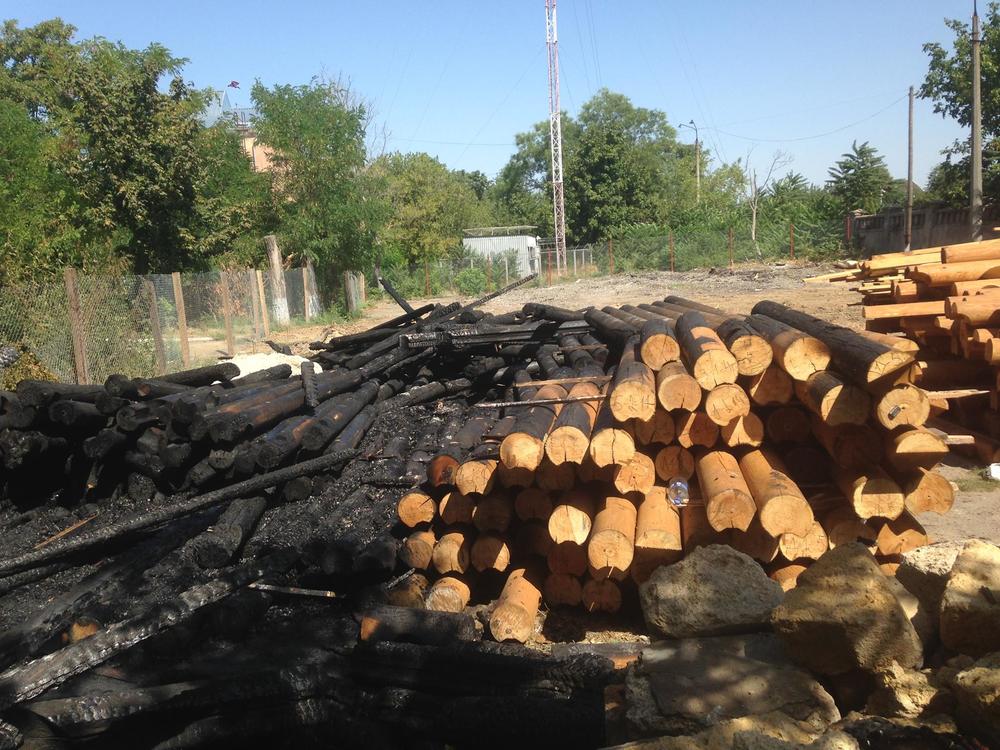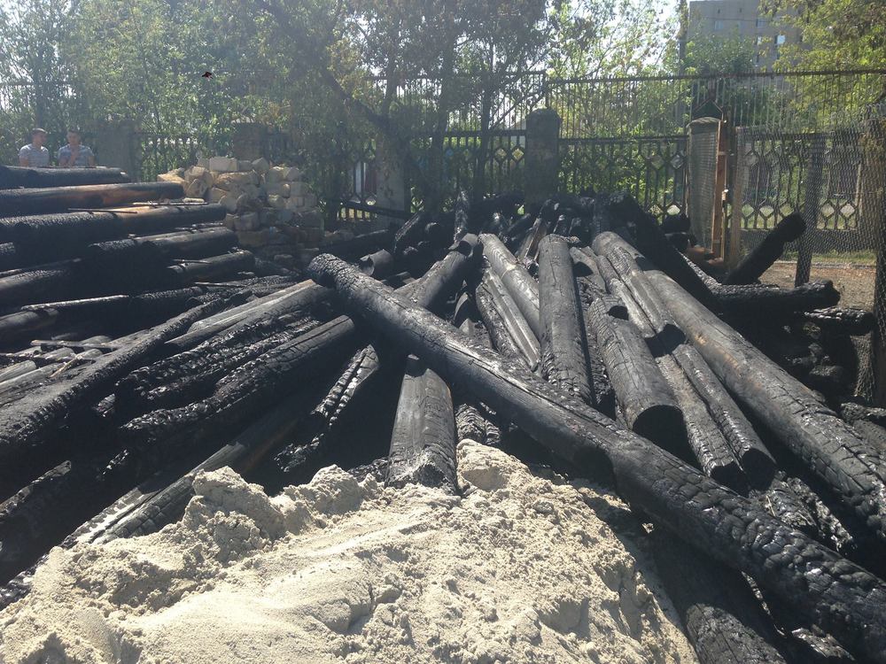 И вот в ночь на пятницу 26 августа, прорезав сетку ограждения, злоумышленники подожгли склад бревен, предназначавшихся для строительства храма-сруба. Пожарные приехали без особой задержки, но половина стройматериалов успела сгореть. Это может указывать на то, что их предварительно облили горючим веществом.