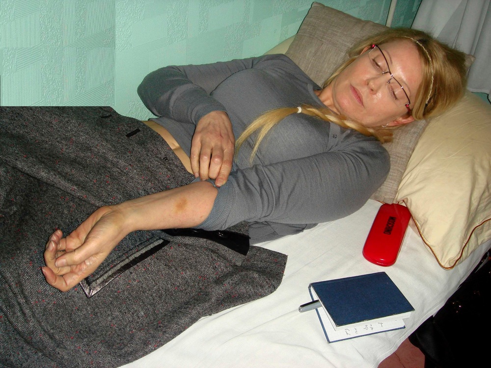 В 2011 году - новые обвинения, СИЗО, а потом и тюрьма. И новая, много более скромная прическа, требующая минимального ухода. Фото вверху сделано в больнице, а фото внизу - в камере, где содержалась Тимошенко.
