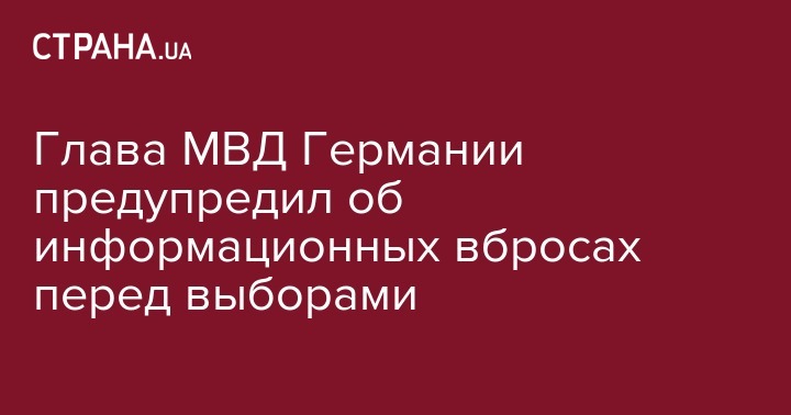 Глава МВД ФРГ Томас де Мезьер заявил о том, что надеется на то, что граждане не поддадутся на попытки манипулировать общественным мнением перед выборами в парламент. Об этом сообщает "Укринформ".