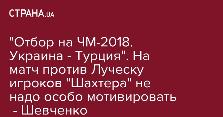 - Матч очень важный, потому как дальше мы будем понимать, есть ли у нас шансы бороться за выход из группы. Надо показывать хороший, зрелищный, комбинированный футбол. Если нам все удастся на футбольном поле - мы обыграем турков, - рассказал Андрей Шевченко.
