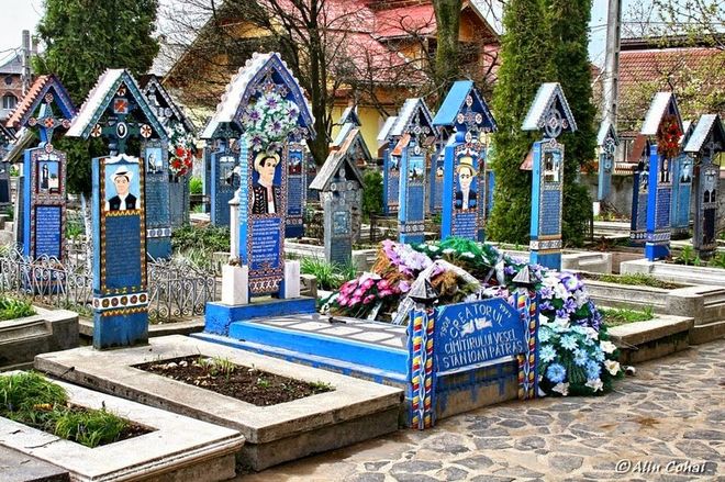 Румынское кладбище в городке Сапанта стало центром творчества черных юмористов. Местные жители начали раскрашивать надгробия в яркие и красочные цвета, а также вписывать смешные стишки покойным.