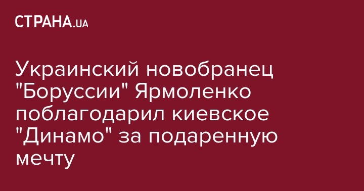 Экс-нападающий киевского "Динамо", а ныне игрок дортмундской "Боруссии" Андрей Ярмоленко выразил благодарность родному клубу за осуществление мечты - играть за большой европейский клуб. Об этом сообщает пресс-служба "Боруссии".